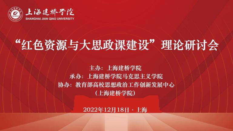 为深入学习贯彻党的二十大精神,切实落实习近平总书记关于“大思政课”建设的重要指示,持续推进善用红色资源融入“大思政课”建设的高校思政课改革和实践,探索思政课进入高质量发展新阶段之下如何利用好红色资源,更好发挥铸魂育人成效,2022年12月18日,依托教育部高校思想政治工作创新发展中心(上海建桥学院),由上海建桥学院主办、上海建桥学院马克思主义学院承办的“红色资源与大思政课建设”理论研讨会在线上成功召开。