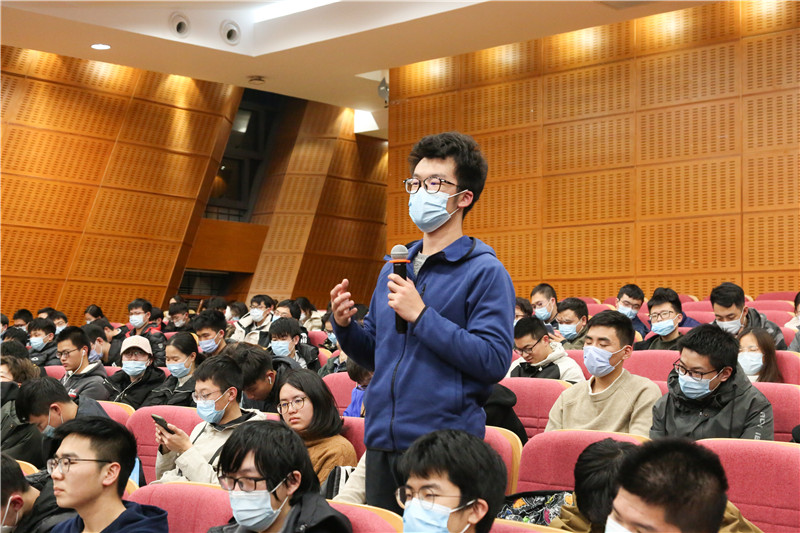 提问交流环节,林忠钦围绕新生心态调整、复合型人才培养、基础知识学习与科技创新关系等问题进行了回答,表示要保持良好的心态和自信,时刻反思、总结;关注社会科学,注重培养人文素养,努力成为新时代复合型人才;学好知识,打牢基础,勇于面对未来科学技术的重大难题和挑战。