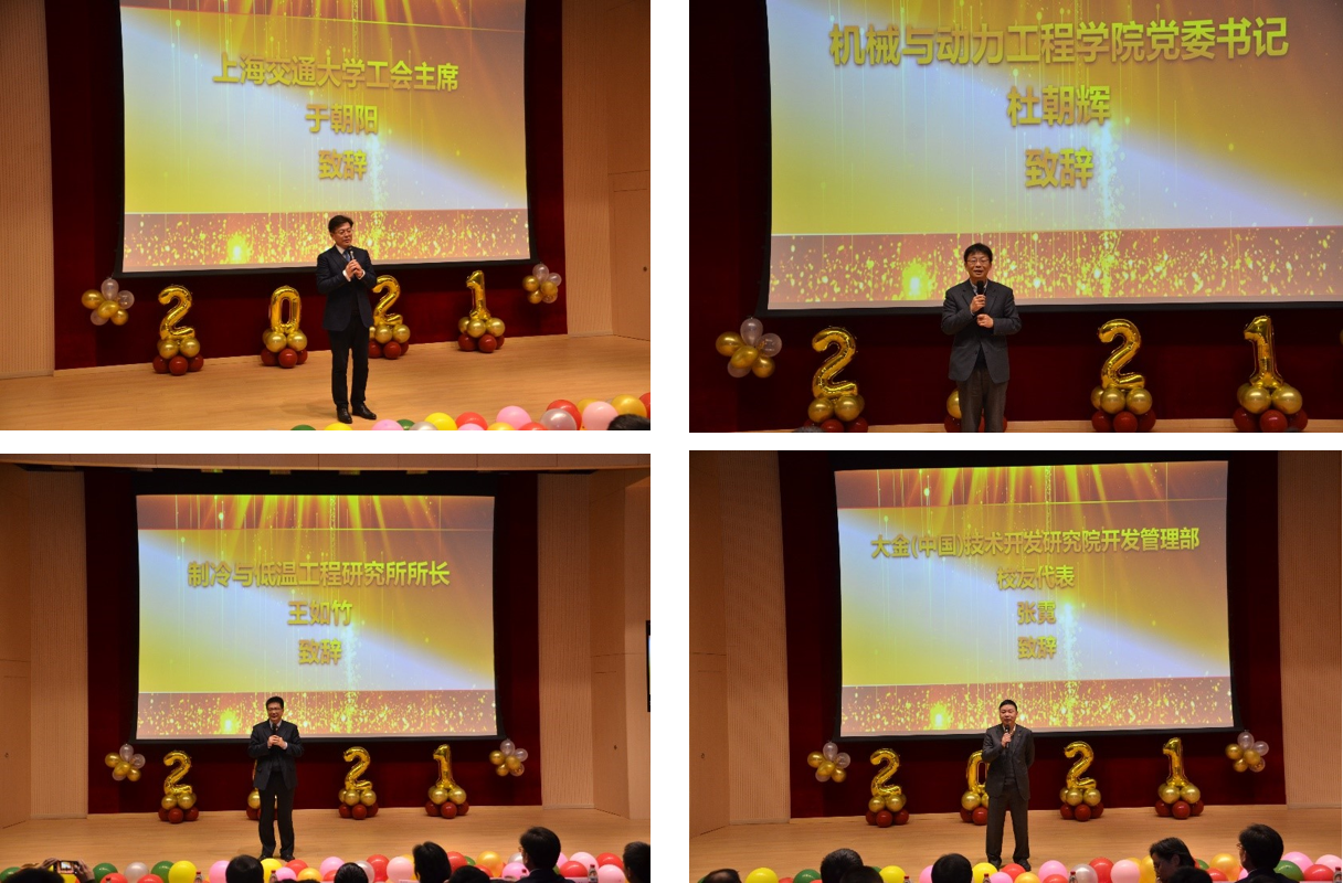 12月25日,制冷与低温工程研究所(以下简称“制冷所”)2021“交大冷暖”新年联欢会举行。上海交通大学副教务长吴静怡,工会主席于朝阳、副主席杜夏明,机械与动力工程学院党委书记杜朝辉、副院长王丽伟,中英低碳学院院长、工程热物理研究所所长赵长颖,制冷与低温工程研究所所长王如竹,上海交通大学校排舞协会会长朱慧芳,大金(中国)技术开发研究院开发管理部部长张霓等参加了联欢会。晚会由大金(中国)投资有限公司赞助。