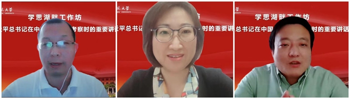 工作坊上,青年教师一起在线观看了视频短片《坚持党的领导传承红色基因扎根中国大地 走出一条建设中国特色 世界一流大学新路》,回顾了习近平总书记在中国人民大学考察调研的全过程重要讲话。