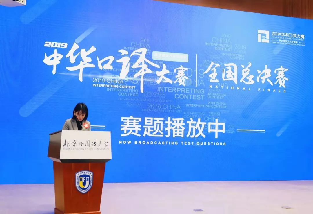 2019年12月29日,由联合国训练研究所官方指导和支持、北京策马翻译有限公司和联合国训练研究所上海国际培训中心联合主办、北京外国语大学英语学院承办的2019中华口译大赛全国总决赛在北京外国语大学隆重举行。