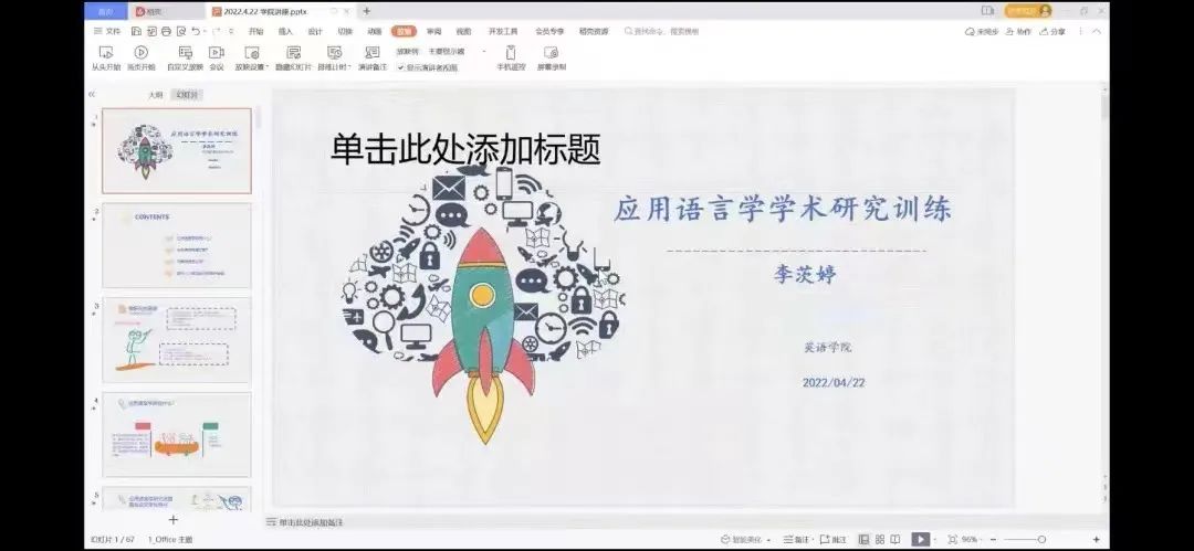 2022年4月22日上午,上海外国语大学英语学院教授、博士生导师李茨婷老师为大家带来“英华人文系列讲座”第159讲“应用语言学学术研究训练”。该讲座为正在进行应用语言学研究和对应用语言学感兴趣的同学提供了学科素养提升的建议和研究方法的指导,得到了校内外师生的一致好评。