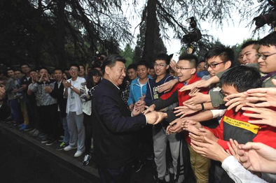 习近平总书记在校园观看北大师生纪念五四运动95周年青春诗会。(新华社记者 鞠鹏 摄)