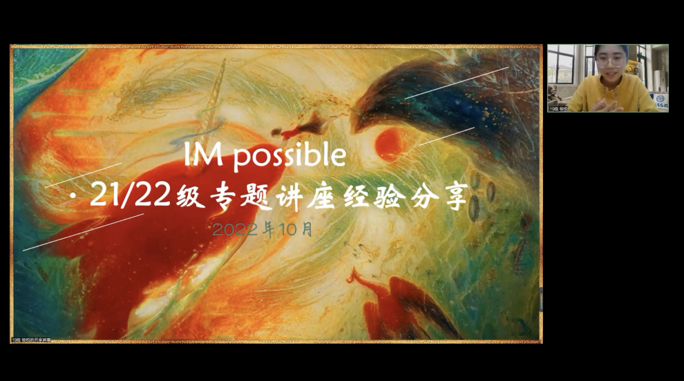 她多次作为学生代表与学弟妹们分享自己的大学生活,谈到选择,谈到心态,并受邀于SISU Elite Club平台分享保研经历,“就像爱默生所言, ‘To know even one life has breathed easier because you have lived. This is to have succeeded.’ 我希望他们从我的经历中收获点什么,经验或教训,但其实我也是在复盘自己的大学生活,接纳无数次经历潮起潮落的自己。”
