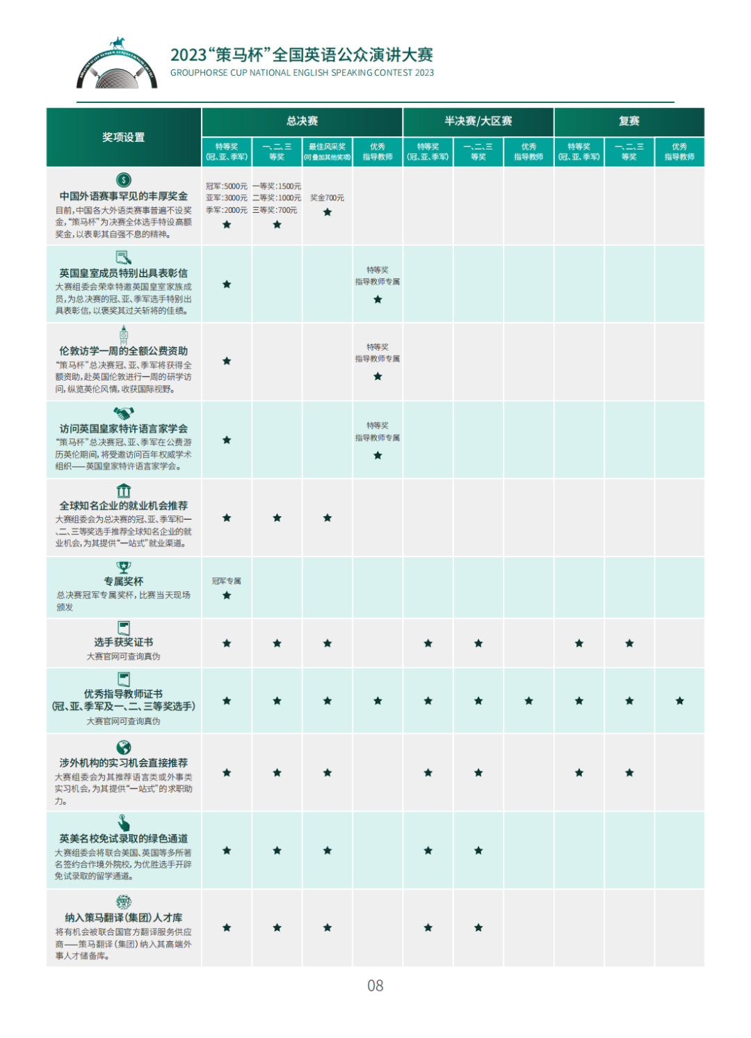 2023“策马杯”全国英语演讲大赛奖项设置