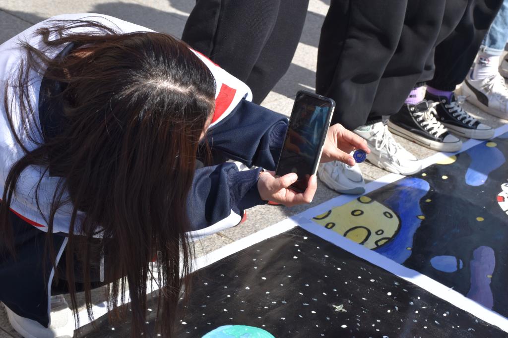 特殊教育学院辅导员孙彪介绍,本次活动从筹划到绘制历时半个月,在筹备的过程中,同学们自己找资料、定图样,活动既是对我国航天事业的回顾,也是对党领导下的新中国奋进伟力的歌颂和赞美。