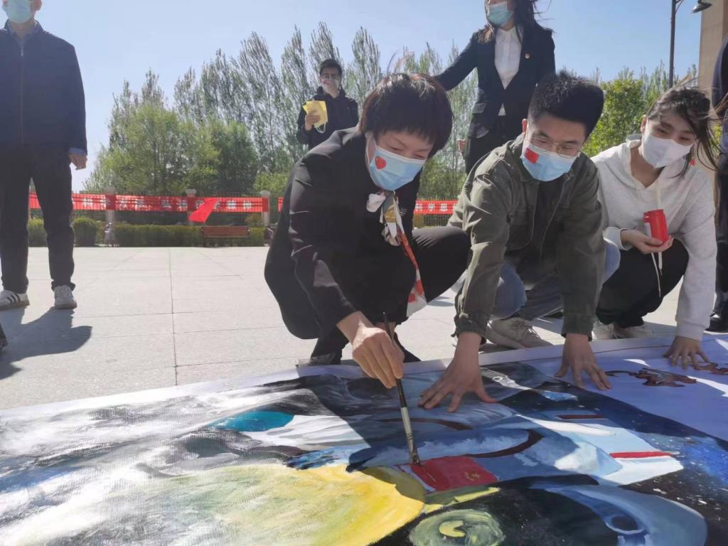 院长李翠霞,副院长田国忠、卢百胜、马春华,党委委员、宣传统战部部长刘鹏程也加入到创作的行列,为图画着色。李翠霞还走到同学们中间,与同学们亲切交谈,不时竖起大拇指。