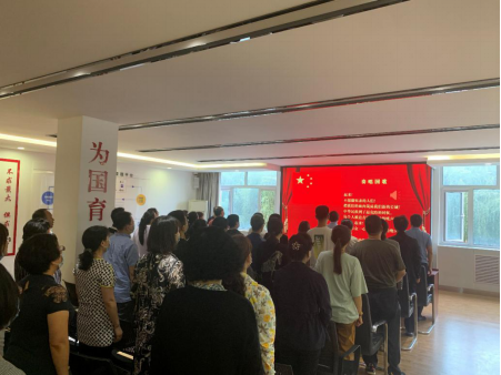 最后,石若峰书记带领全体党员面对党旗,重温入党誓词,并要求大家坚持和加强党的全面领导,坚持党要管党、全面从严治党,严格以党员标准要求自己,始终保持生命不息、奋斗不止的奉献精神,全心全意为人民服务!大会在雄壮的《国际歌》中圆满落幕。