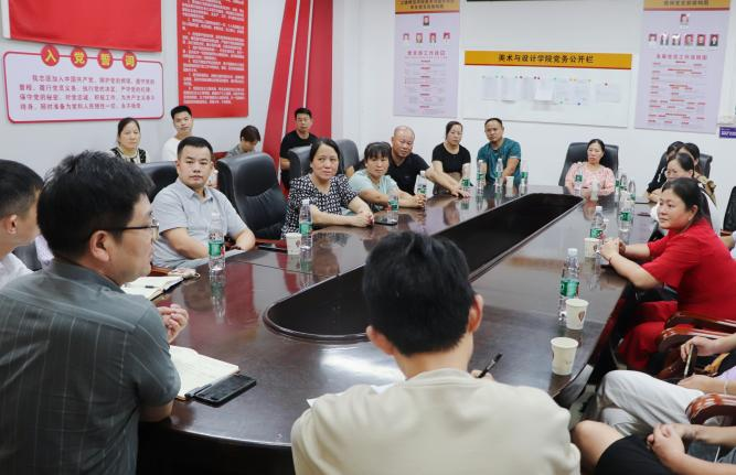9月8日下午,美术与设计学院在美术楼党员活动室召开2023级新生家长座谈会。美术与设计学院党总支书记洪广明、副院长吴娜、副书记傅继强、学工办主任刘丕华参加座谈会。座谈中,家长们围绕教育教学、管理服务等方面提出了建议。学院领导与新生家长现场交流,并表示将继续畅通反馈渠道,统筹协调做好管理和服务工作,为同学们的成长成才创造良好条件。