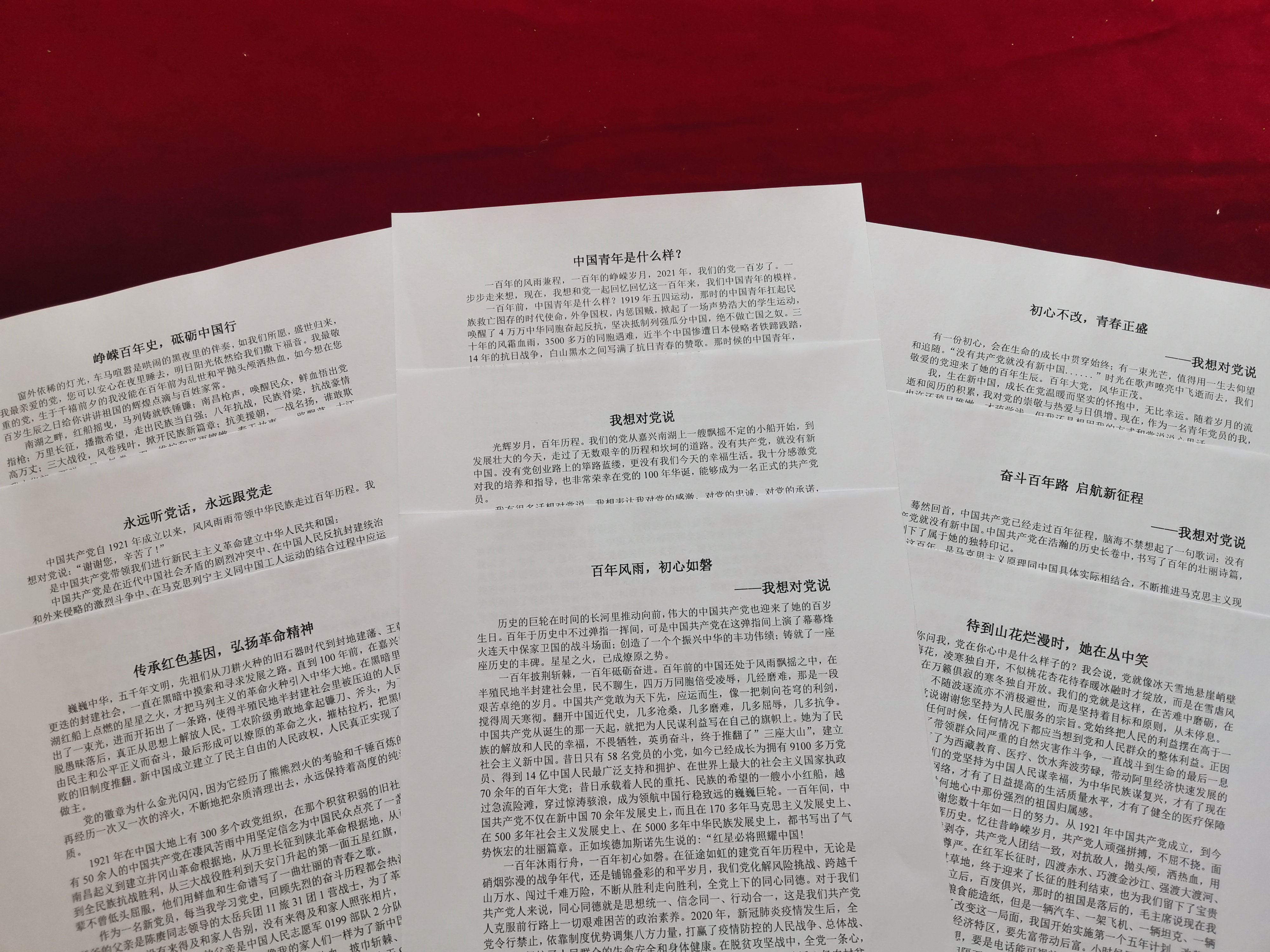 同心共筑中国梦,党的光荣耀我心。2021年,中国共产党迎来百岁华诞。百年波澜壮阔,百年壮丽辉煌,为热烈庆祝建党百年,文化旅游学院学生党支部积极响应相关活动,号召党员踊跃参与征文活动,怀揣赤诚之心,用文字抒发对党的热爱和赞颂。