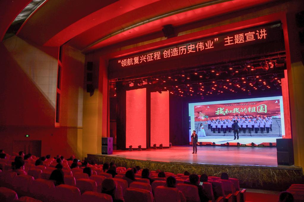 宣讲以“领航复兴征程创造历史伟业”为题,采用主题式理论讲解与情景式艺术演绎相结合的方式,分为“十年峥嵘,绘就壮美画卷”“高举旗帜,推进伟大复兴”“伟大实践,中国式现代化”“自我革命,破解历史周期”“党的领导,领航复兴征程”“自信自强,激昂青春力量”六个篇章。宣讲团成员用一组组直观翔实的数据、一个个生动鲜活的案例、一句句掷地有声的话语,列举中国十年来的历史性巨变,宣讲党的二十大的重大现实意义和深远历史意义、讲述百年大党的自我革命之路,揭示只有坚持党的领导,才能铸就应对各种风险挑战坚不可摧的钢铁长城,展现出新时代青年听党话、跟党走的坚定决心。整个宣讲活动震撼人心、催人奋进,带给观众强烈的“浸入式”体验。