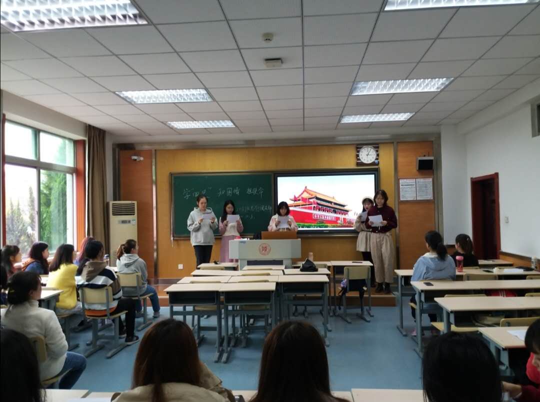 活动第二环节,支部团员们以团小组形式进行“四史”经典诵读,节选了《我的马克思主义观》《1949年中华人民共和国中央政府公告》《在“不忘初心、牢记使命”主题教育总结大会上的讲话》等五篇重要文章,采用多媒体等多样化形式,在诵读经典中感受爱国主义精神,使同学们深入了解我们党领导人民艰苦卓绝的奋斗历程,更加清晰地认识到红色政权来之不易、改革开放以来取得的伟大成果来之不易。