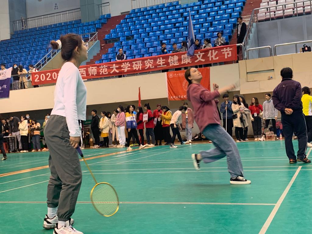为提高研究生的综合素质,丰富研究生的校园文化生活,展现研究生团结拼搏、不断进取的精神风貌,11月14日上午,我院2018级、2019级以及2020级部分研究生组成的代表队参加了由我校研究生院(研工部)、体育学院主办,校研究生会、体育学院研究生会承办的2020年研究生健康文化节“师生杯”羽毛球赛。