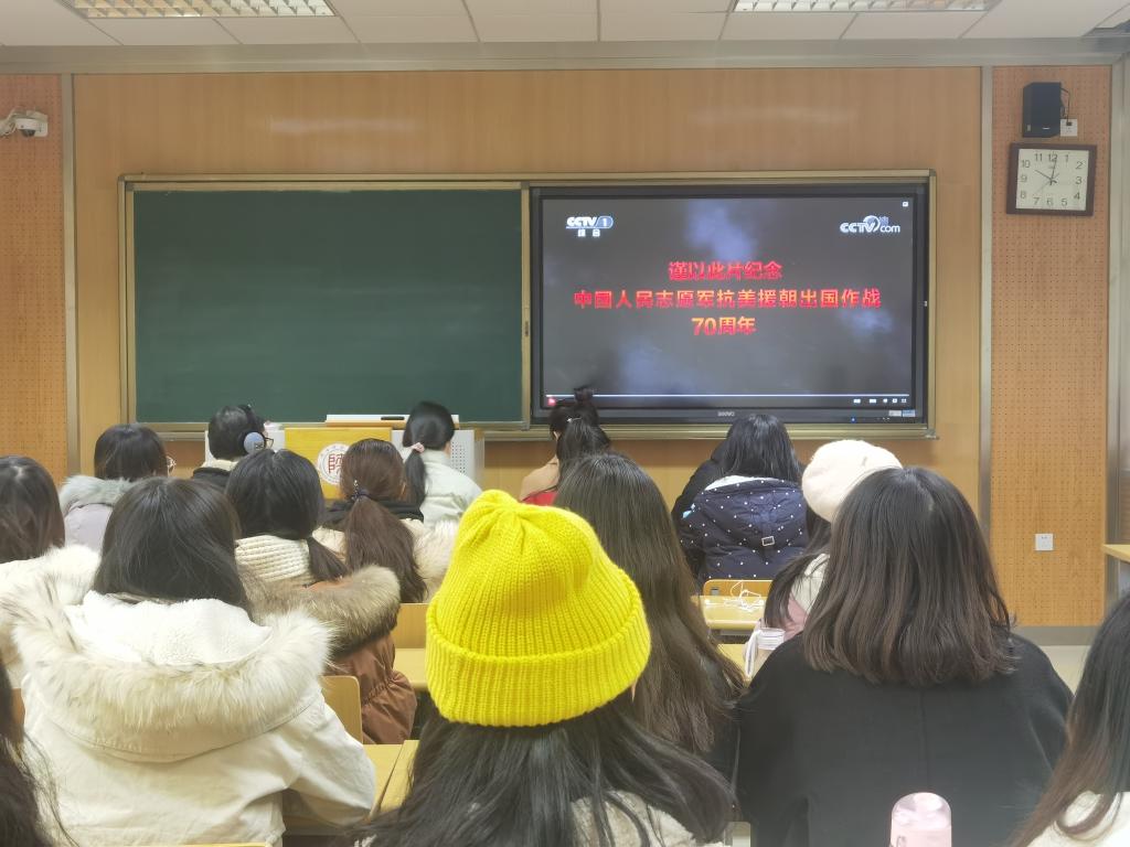 为纪念中国人民志愿军抗美援朝出国作战70周年,铭记历史、铭记英雄,2018级思想政治教育卓越班于2020年12月21日,在文渊1318教室集中观看了大型电视纪录片《为了和平》。