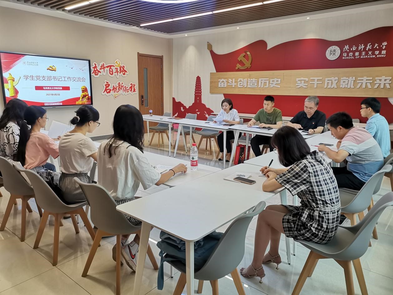 张倩就推进学生党支部党史学习教育工作进行安排,要求各支部持续学、深入学、反复学,通过个人自学与集中学习相结合的方式,进一步推动党史学习教育做到位、见实效。本科生第一党支部书记陈超与研究生辅导员王健分别领学了《陕西师范大学本科生党支部建设标准》、《陕西师范大学研究生党支部建设标准》,进一步明确了党支部工作职责,规范了党支部工作行为,加强党支部标准化、规范化建设。本科生第二党支部书记崔林刚就党员发展程序与组织关系转接工作与与会成员展开交流,对支部在党员发展与组织关系转接过程中遇到的问题做以说明,同时强调各支部要严格党员发展程序,推进党建工作有序开展。