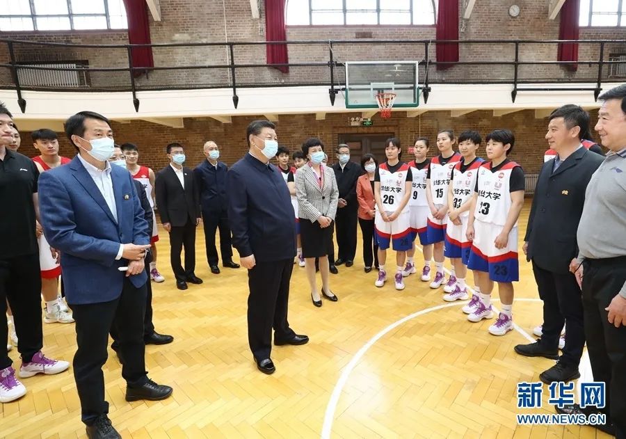 位于校园西北部的西体育馆,是清华早期四大建筑之一。在馆内篮球场,校篮球运动员正在进行训练。习近平走进体育馆,同他们亲切交谈,并在体育荣誉室察看历史照片、实物展览,了解体育馆保护利用、学校继承发扬优良传统、开展体育教育等情况。习近平表示,重视体育是清华大学的光荣传统,希望同学们发扬好清华大学的优良学风和体育传统,坚持德智体美劳全面发展,努力成为祖国建设的栋梁之才。