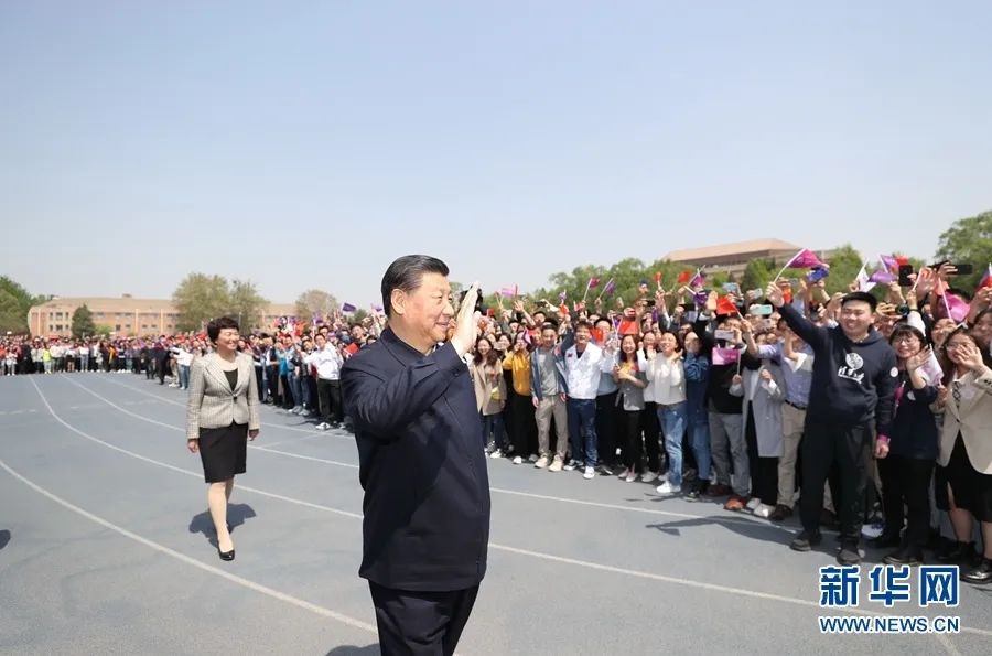 4月19日,在清华大学建校110周年校庆日即将来临之际,中共中央总书记、国家主席、中央军委主席习近平来到清华大学考察。这是习近平离开学校时,同师生们挥手致意。新华社记者 鞠鹏 摄