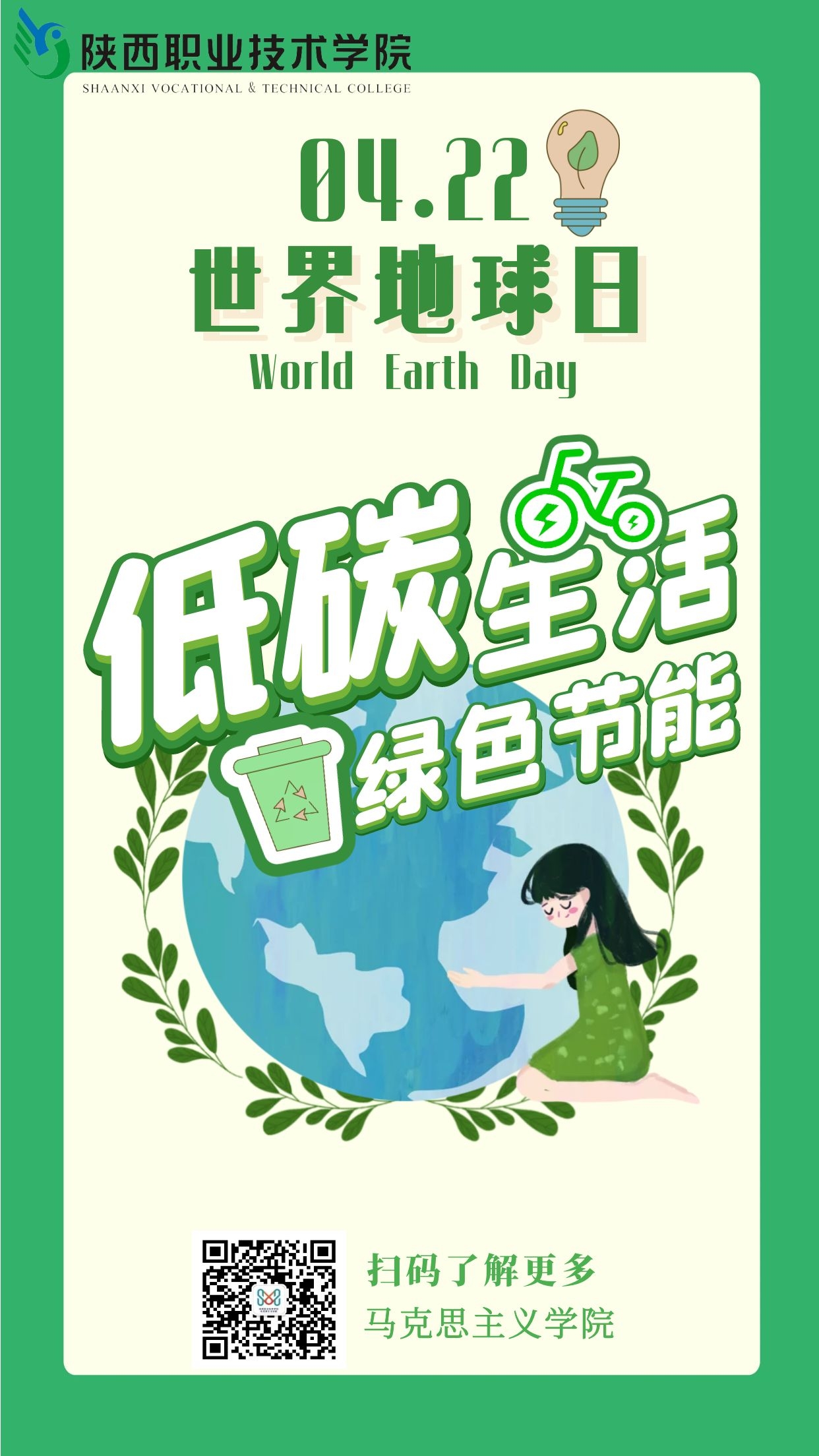 世界地球日即每年的4月22日,是一个专为世界环境保护而设立的节日,由盖洛德·尼尔森和丹尼斯·海斯于1970年发起。旨在提高民众对于现有环境问题的意识,并动员民众参与到环保运动中,通过绿色低碳生活,改善地球的整体环境。2009年第63届联合国大会决议将每年的4月22日定为“世界地球日”,中国从20世纪90年代起,每年都会在4月22日举办世界地球日活动。