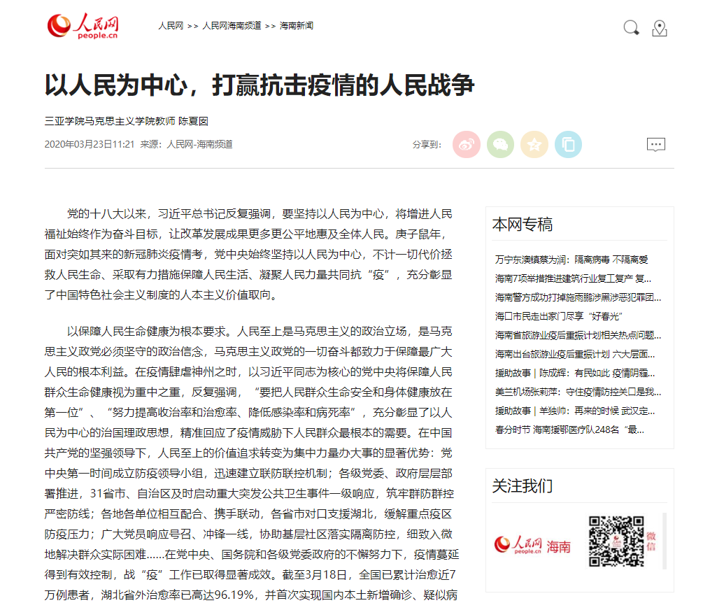 疫情发生以来,我院积极组织教师深入学习党和国家关于防疫工作文件规定,贯彻落实习近平总书记关于防疫工作的重要讲话精神,认真开展“停课不停学”,充分发挥思想政治理论课落实立德树人根本任务,积极开展战“疫”不停研,组织教师撰写疫情理论文章,人民网和中宣部学习强国多次转载我院教师文章。