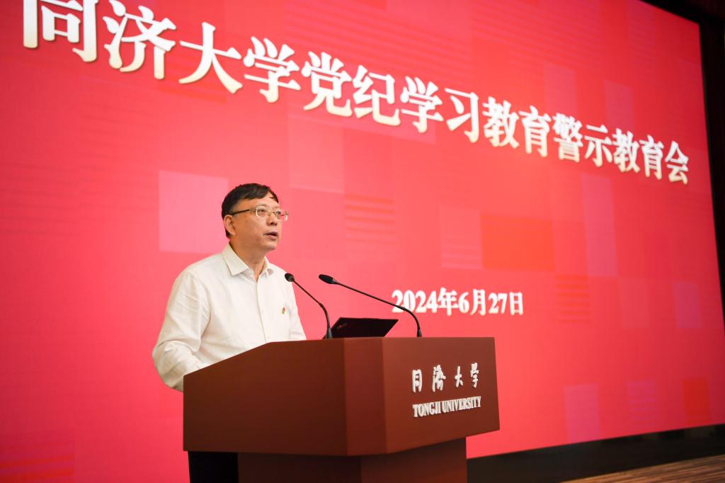 为深入学习贯彻习近平总书记关于全面加强党的纪律建设的重要论述,引导教育全校党员干部学纪、知纪、明纪、守纪,推动党纪学习教育走深走实,同济大学于6月27日召开党纪学习教育警示教育会。会议通报了教育系统和本校违纪违法典型案例和学校近期纪律审查工作情况,要求全校党员干部以案为戒、以案明纪,切实把遵规守纪内化为思想自觉和行动自觉。校党委书记方守恩主持会议并讲话,校党委副书记、纪委书记、监察专员方平作警示教育报告。