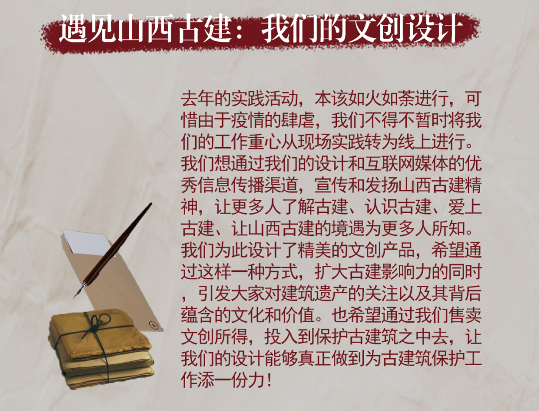 通过设计和互联网媒体的优秀信息传播渠道,宣传和发扬山西古建精神