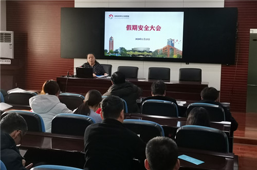 为贯彻落实天津理工大学关于开展“大干60天”全力确保校园安全工作方案,守住学院安全底线,2020年1月15日,材料学院全体教师在11-508召开学院安全工作大会,党委书记马红健老师对假期期间学院整体安全工作进行再部署,院长袁志好老师对安全工作提出再检查的要求。