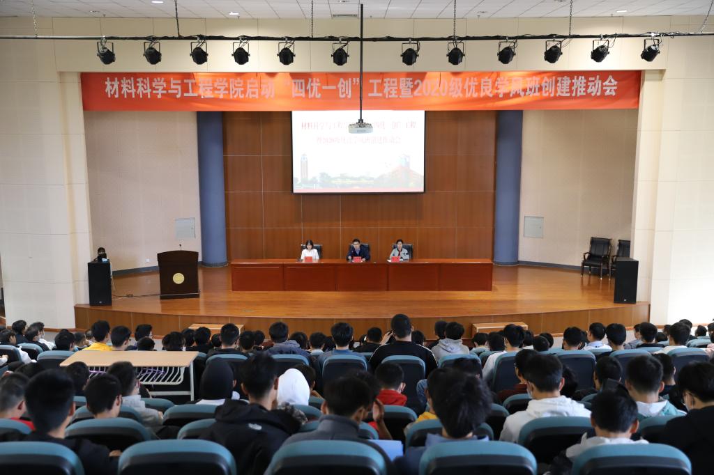 为扎实推进学校学风建设年活动,进一步营造良好学风氛围,构建适应学校内涵的教风学风建设长效机制,材料学院多措并举,围绕“三风一训”即党风、教风、学风和校训广泛开展培育优良学风教育系列活动,推动形成“以优带学”的良好学习风气。2020年10月21日,学院召开材料科学与工程学院启动“四优一创”工程暨2020级优良学风班创建推动会,材料学院学生工作主要负责人出席会议,2020级全体学生参会。