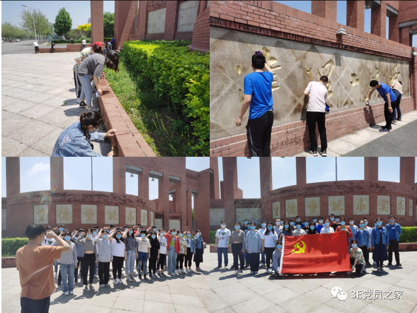 活动伊始,党支部书记王老师向所有党员介绍了此次活动的意义,并为同学们讲解了学校校训的含义。随后各位同志两人一组,主动承包责任区,用抹布细致擦拭学校南门的校名石碑与校训石碑,并认真清理了现场的遗留垃圾废物。在清理过程中,各位同志既体会了劳动的辛苦,更是对校园的清洁工作人员表达了尊重与感谢;与此同时,在劳动过程中也在细细感受校园的美丽,发现体会天理之美。清理过后,30余名支部党员同志在校训石碑前进行了集体宣誓,表达了对学校的感恩与感激,同时也立志谨遵校训“重德重能求实求新”,在天理沃土上茁壮成长,惜时如金,增长本领,磨砺品质,为学校发展贡献青春力量,为祖国建设添砖加瓦。