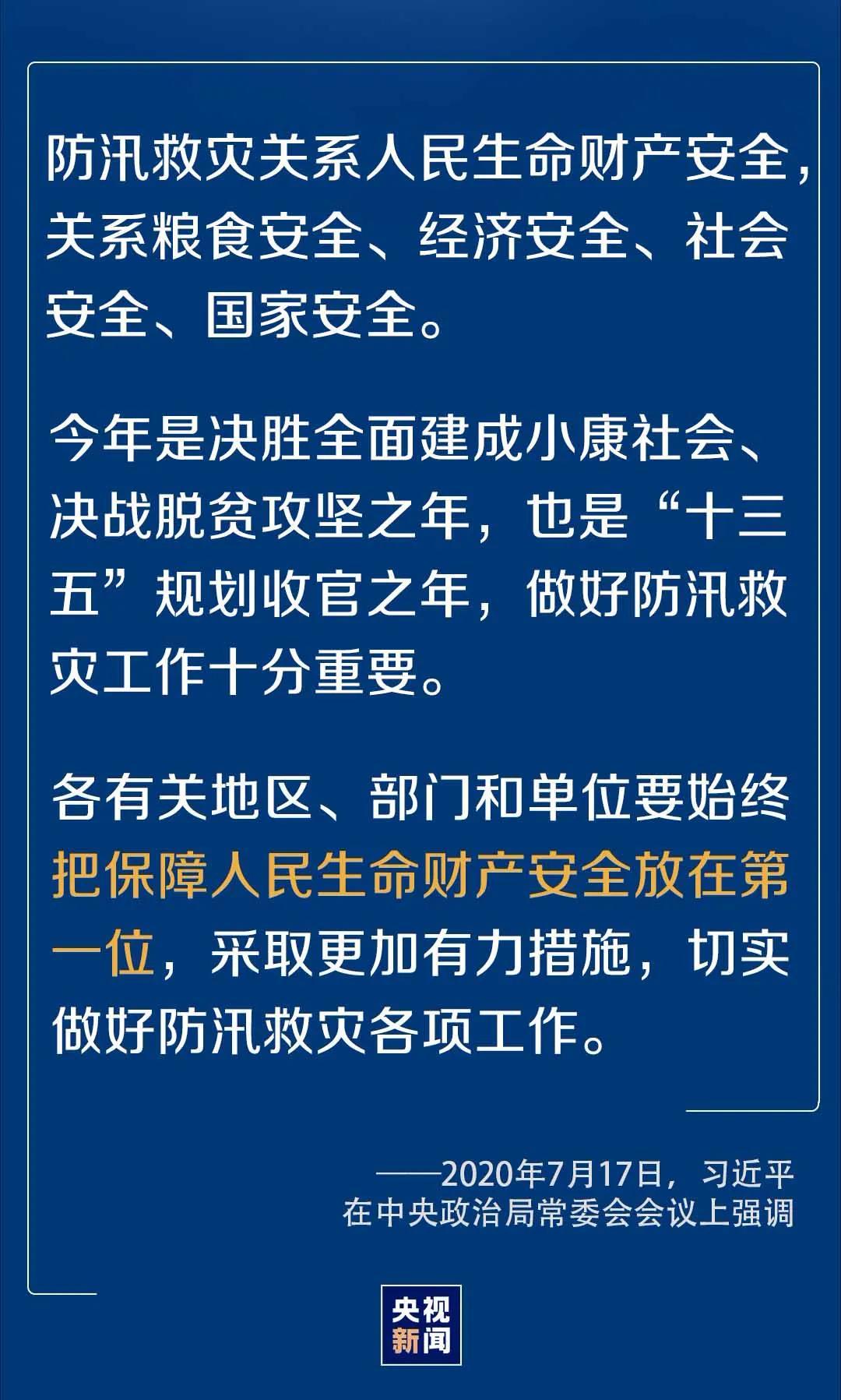 7月17日,中共中央政治局常务委员会召开会议,研究部署防汛救灾工作。中共中央总书记习近平主持会议并发表重要讲话。“今年是决胜全面建成小康社会、决战脱贫攻坚之年,也是‘十三五’规划收官之年,做好防汛救灾工作十分重要。”当前,全国防汛进入“七下八上”阶段,习近平总书记的讲话为全党全国上下防汛工作作出最强动员。