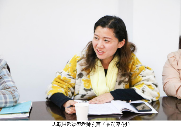 座谈会上,思政课部教师围绕我校思政课教学改革创新积极发言。余胜任老师认为,上好思政课要因材施教,强调教学设计的重要性。邓华杰老师表示,思政课教师要在调动学生学习积极性上下功夫,从而提升课堂教学效果。课堂教学要从小处着手,讲学生“听得懂”的课程,在课堂教学中,教师应该结合课程内容及自身教学特点,加强与学生互动交流的设计。汤堃老师建议理论教学中多使用案例教学,多选择社会热点案例,吸引学生关注。其他与会思政课教师以及相关职能部门部门负责人还结合思想政治理论课教学、科研以及推动思政课部的发展等话题,畅谈了各自的感悟与思考,并提出了许多建设性的意见和建议。