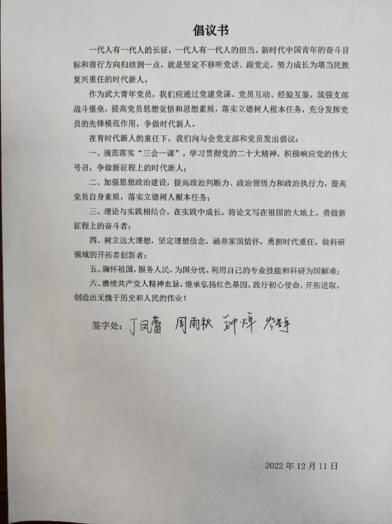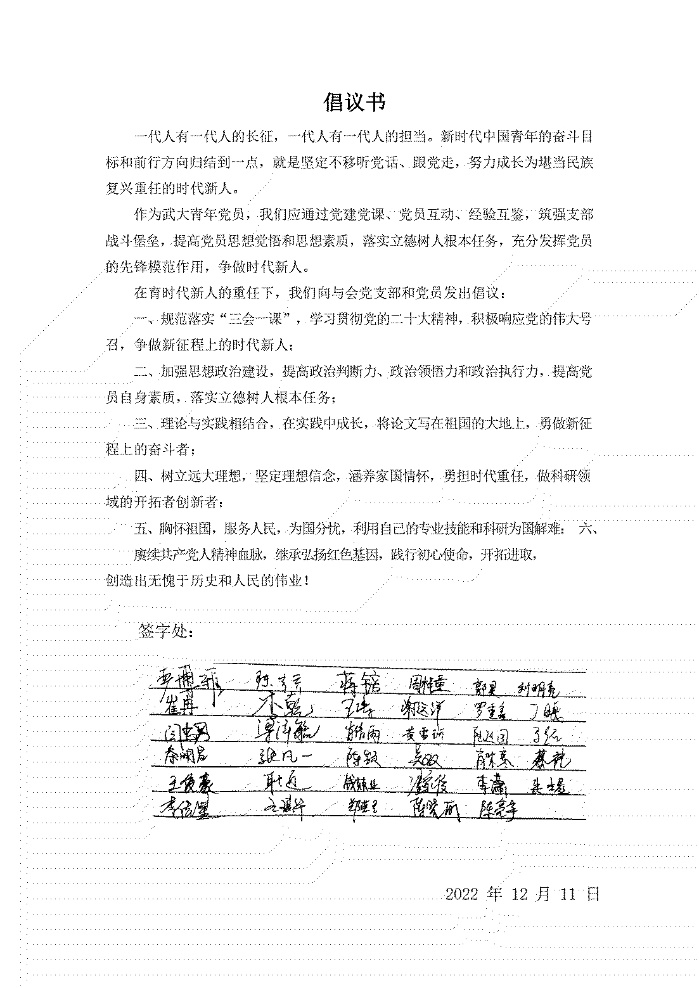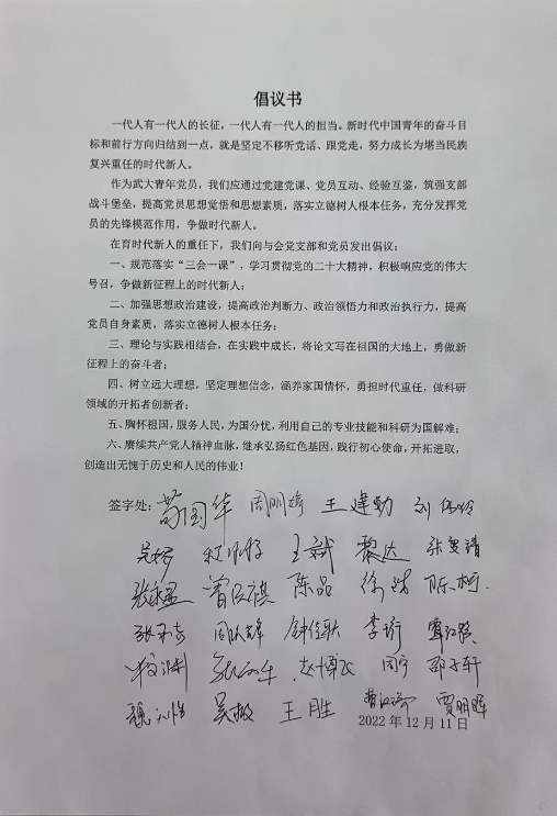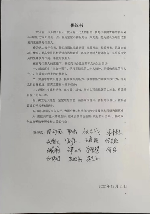 在育时代新人的重任下,我们向与会党支部和党员发出倡议: