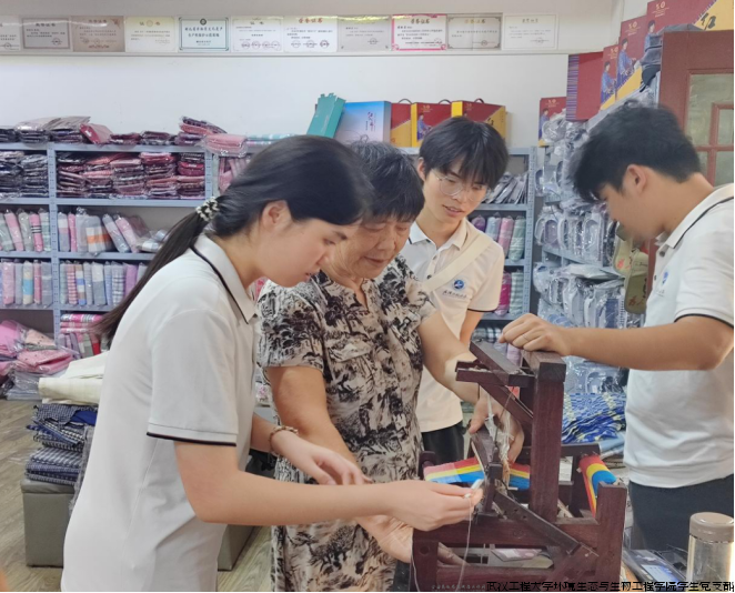 实践团走进红安县非物质文化遗产保护传承基地,感受红色革命历史与非遗技艺文化的碰撞。红安大布传统纺织技艺省级传承人黄珍兰大师向实践团介绍织布机的结构和运行原理,展示自己制作的改良版织布机。实践团成员积极参与体验传统手工艺,深入感受织布的魅力,零距离感悟红安大布制作技艺,全方位体验红安大布非遗文化,感受革命历史与当地文化的融合。这是与历史的互动,与红色温度背贴着背的精密接触,更是文化的传承与交融的集合。