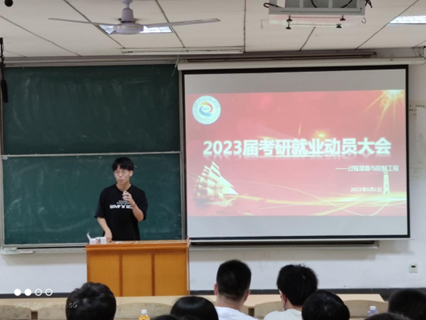 为做好2023届毕业生考研就业指导工作,帮助同学们深入了解当前考研就业情况,充分调动学生考研就业积极性,树立考研就业信心,近日,机电工程学院过程装备与控制工程专业在流芳校区L2205教室召开考研就业动员暨经验交流分享会。学院党委书记李芳、党委副书记孙丽娜、2019级辅导员何巧玲,以及化机支部喻九阳教授、杨红教授、肖波齐教授、徐青山主任以及2019级过程装备与控制工程专业的全体学生参加了此次会议。会议由2019级过控1班团支书姜浩翔主持。