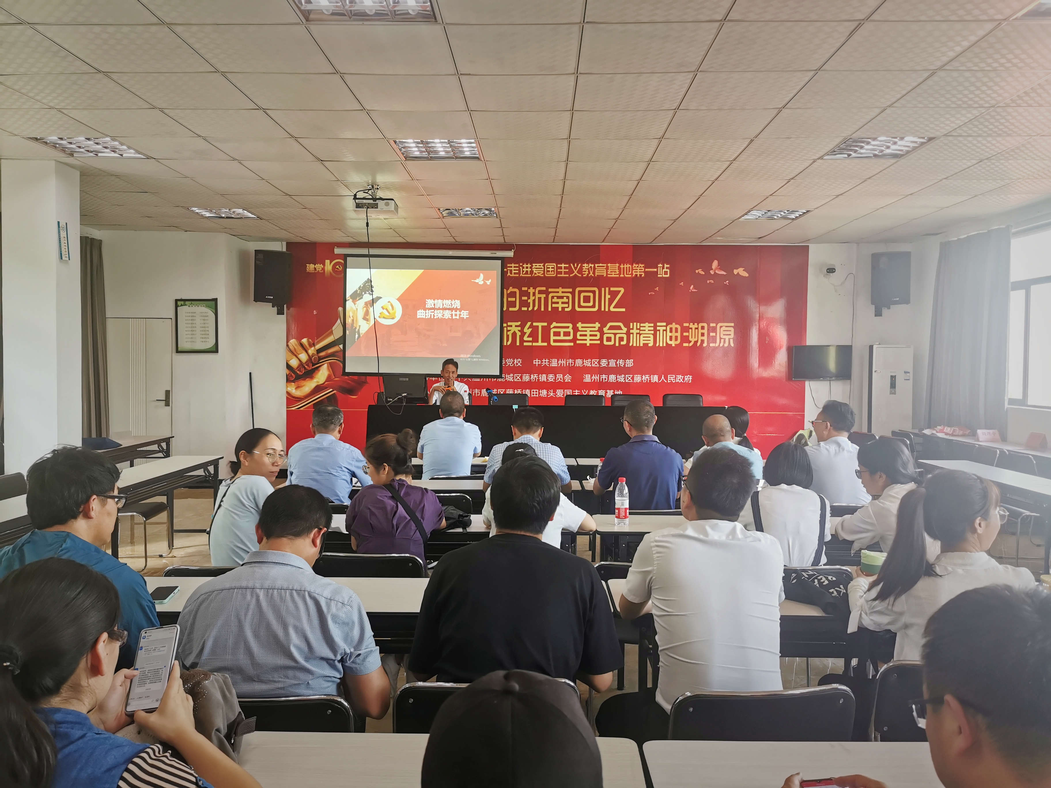 来到革命烈士纪念馆,伴随着村支书的讲解,让我们仿佛回到那个艰苦斗争、战火连天的岁月。一张张历史照片、一件件文献实物、一段段文字记录,让大家重温了伟大的革命历史和英雄壮举,使大家切身感受革命先烈们的艰苦卓绝,大家深深被革命先辈坚定的理想信仰、高尚的道德情操、无私无畏的奉献精神感染。随后,在纪念馆外,面对鲜艳的党旗,大家庄严宣誓,重温了入党誓词。
