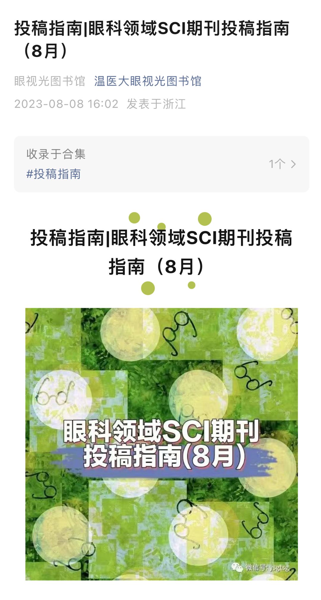 (21级眼科学博士 韩佳欣)希望图书馆继续推送高水平文献导读、专家共识和SCI期刊投稿指南等文章。