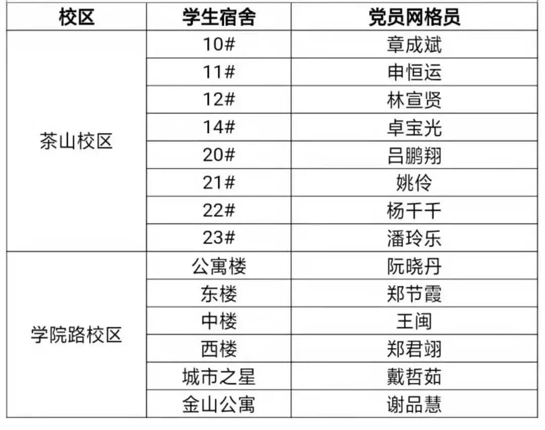为了进一步做好新型冠状病毒感染的肺炎疫情防控工作,发挥好党支部在学生社区疫情防控方面的政治优势和党员的先锋模范作用,经支部会议讨论,决定以本支部为依托,以每楼幢为网格,每个党员作为一名网格员对接一幢学生宿舍楼,对学生社区实行网格化管理。现将网格员(党员)职责规定如下: