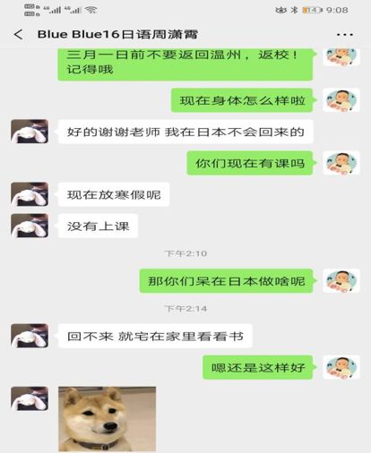 “老师,谢谢你和我讲了温州市疫情发展的态势和防控的政策,我寒假会呆在日本的,有什么困难再同您联系,谢谢!”旅日的陈宣好同学在电话中说道。防控工作开展伊始,程婵婵首先便想到了在日本参加交换生项目的四名学生,并一一去电,讲解政策,询问困难。对于分布在全国各地的学生,她坚持给每一名学生送去关怀,通过微信、QQ、短信等形式确保学生信息的完整准确。特别是对于和来自湖北人员有接触的学生、心理困难学生、学业困难学生等,她致力于一一慰问交流,既询问身体情况,又关心居家情况。她说:“疫情虽然阻隔了空间的距离,但不应该成为学校传达温暖的障碍。”