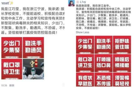 春风化雨,润物无声。在程婵婵向学生传达政策,收集数据的暖心交流中,学生对于疫情有了更为深刻的认识,自觉意识到了当代大学生的担当。学生们常常询问:“程老师,我们也想尽一份力,做点什么好?”通过与学生干部的讨论与沟通,她鼓励学生积极参与人文系党支部组织的防疫宣传视频的构思、录制、剪辑,形成了题为《防控疫情,我承诺》的视频,在学院之中广泛转发,受到师生好评。“程老师给我们讲疫情,讲政策,不仅启发了我们的视频编导,而且让我对自己学生党员的身份认识得更明确了。”参与视频拍摄的季素芳同学说。