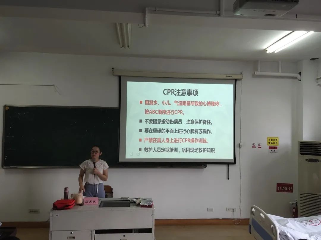 心肺复苏是针对心脏骤停而采取的救命技术,属于救护活动极为重要的一项内容。因此两位老师为大家详细讲解了如何判断病人心跳和呼吸骤停、急救步骤、注意事项和复苏成功的判断方法等,并着重强调了救护中的“黄金四分钟”、CPR操作顺序等内容。