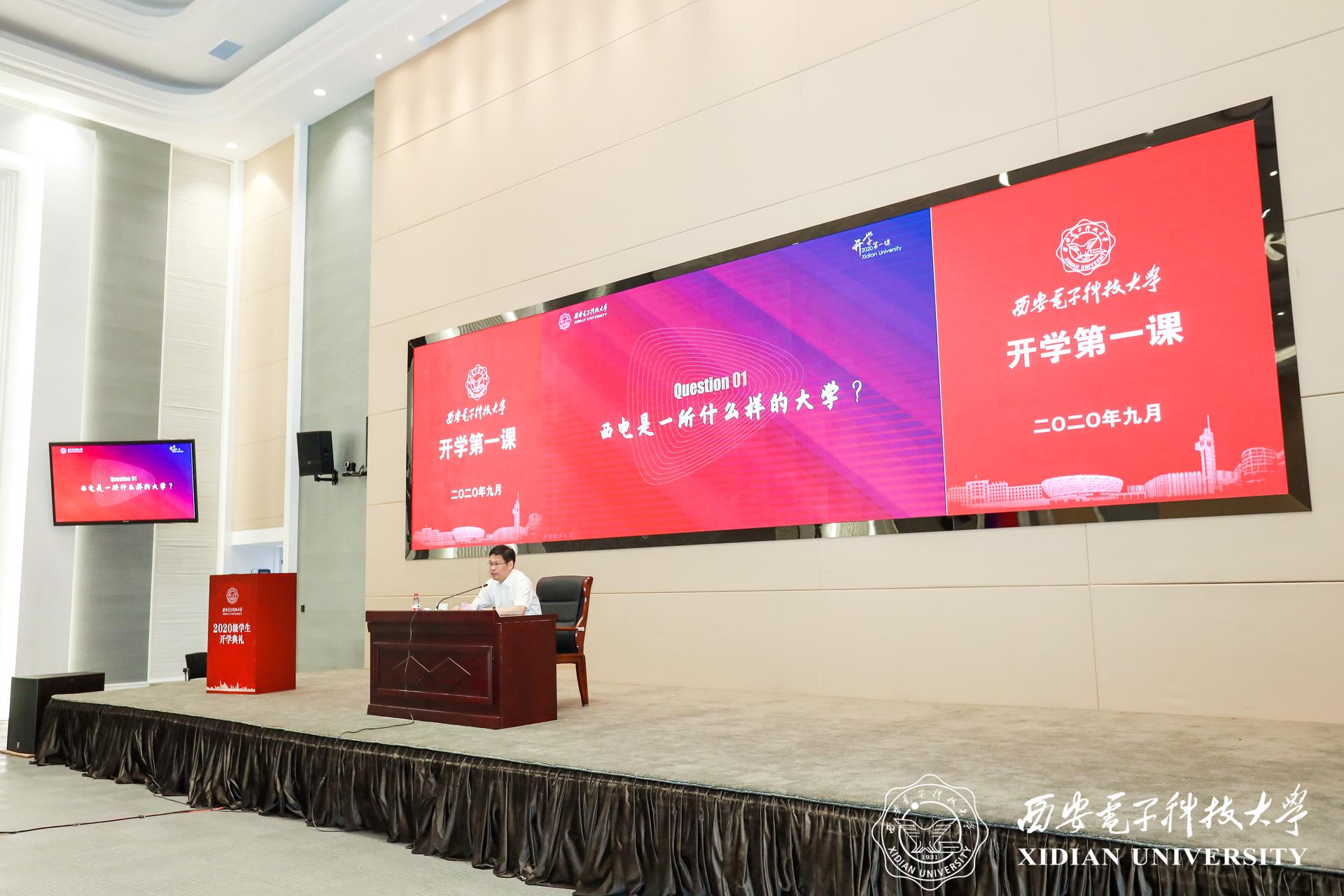 9月14日上午,在新学年开学典礼后,党委书记查显友通过视频连线,为3地7会场的1万余名2020级本科、研究生新生上“开学第一课”。