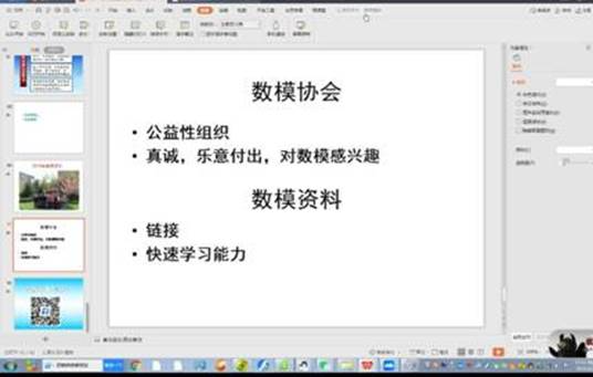 最后,韩老师贴心地为同学们准备了学长寄语环节,体会学长学姐们在参加比赛后的感触与收获,了解数模竞赛对他们的改变。在宣讲结束之际,韩老师向同学们分享了一些数模相关的公益组织与数模有关的资料,为同学们进一步深入了解与学习数学建模知识提供了渠道。