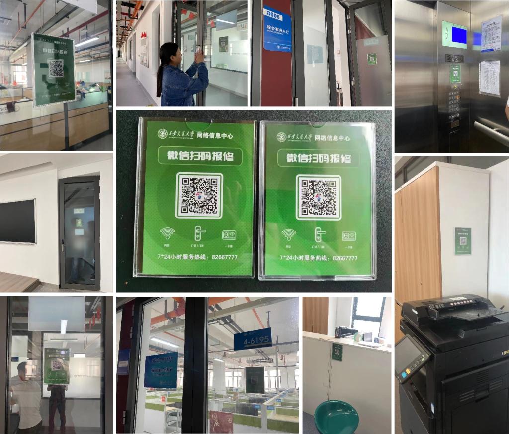 为进一步提升报修平台服务效能,5月27日起,网信中心在创新港各巨构及学生公寓内张贴“西交报修”二维码,师生只需用手机扫描二维码,即可进入网信中心官方微信公众号,选择“西交报修”即可进入报修平台。提交报修信息后,系统将自动分配工单、发送报修动态短信,网信中心运维团队在接到工单后将第一时间联系报修人,快速为师生电话指导或上门排查具体问题。