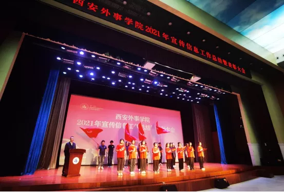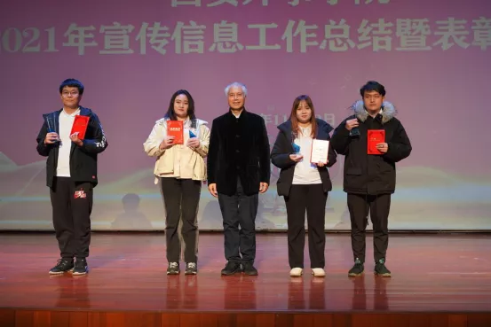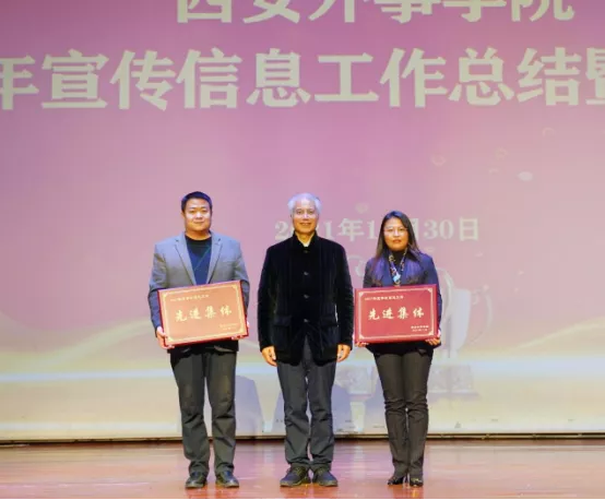 11月30日,西安外事学院在雨花听对2021年宣传信息工作进行了总结与表彰。我校董事长、校长黄藤,党委书记闵小平出席会议并为获奖集体和个人颁奖。各工作部部长,各学院党委、党总支书记,各直属单位、部室信息工作分管同志、信息员,校媒记者,受表彰先进集体代表及先进个人,部分合作单位代表参加会议。党委副书记、行政部部长董宇龙主持会议。