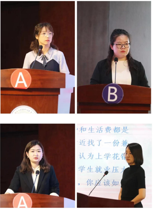 本次大赛决赛采用的案例研讨主要考察辅导员分析问题、研判问题、思考问题、解决问题的综合应用能力。比赛采取“AB角随机组织”,每两名选手为一组同台阐述和问辩的形式进行,参赛选手围绕案例中的问题本质、解决思路及实施办法等依次进行个人阐述,随后选手结合双方个人阐述情况进行案例分析,双方选手依次问辩,评委现场逐一对参赛选手进行提问。10名辅导员老师分成5个小组,通过对案例抽丝剥茧般的分析,准确地找出学生的症结,精准地解决学生问题。经过激烈的角逐,决赛圆满结束。