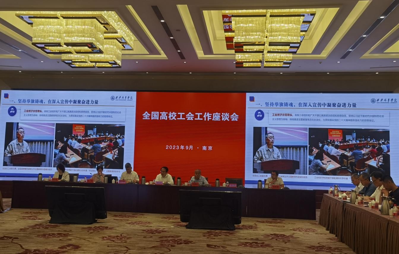 2023年9月7日,中国教科文卫体工会在江苏南京召开首届全国高校工会工作座谈会,推进高校工会更好发挥优势作用,加强教职工思想政治引领,组织建功立业,引导广大教师坚守三尺讲台,潜心教书育人。会上,西安外事学院工会和江苏省教育科技工会、哈尔滨工业大学工会、上海交通大学工会、厦门大学工会、武汉大学工会等9家单位介绍了经验做法。学校党委副书记、行政部部长、工会主席董宇龙在会上作了交流发言。