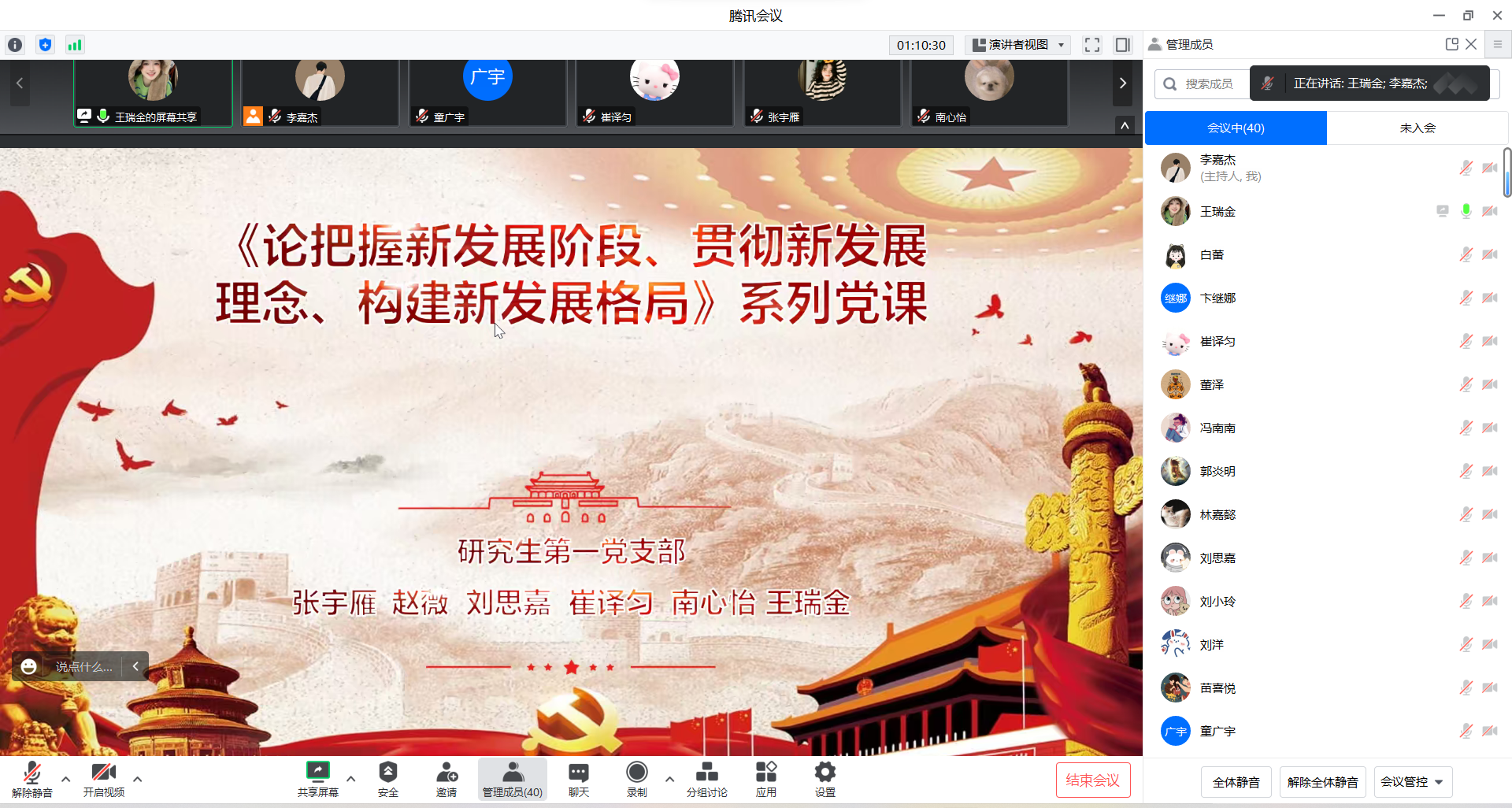 二、王瑞金同志稍后带领我们学习《论把握新发展阶段、贯彻新发展理念、构建新发展格局》系列党课第六部分,该同志紧紧围绕着如何建设世界科技强国这一问题广泛研究,从理解实施创新驱动发展战略的重要性入手,着重强调“创新”的重要作用,并从微观角度分析每个党员个体该怎么做,从路径、目标等方面详细介绍建设世界科技强国的战略发展过程。