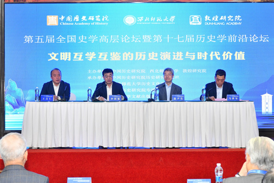 10月11日至13日,由中国历史研究院、西北师范大学、敦煌研究院共同主办,中国历史研究院历史研究杂志社、西北师范大学历史文化学院、中国历史研究院专项工作处共同承办的第五届全国史学高层论坛暨第十七届历史学前沿论坛在敦煌召开,本次论坛以“文明互学互鉴的历史演进与时代价值”为主题。中国历史研究院党委常委、副院长、学部委员、《历史研究》主编李国强,西北师范大学校长、党委副书记王占仁,敦煌研究院党委书记赵声良出席开幕式并致辞。副校长马世年主持开幕式。