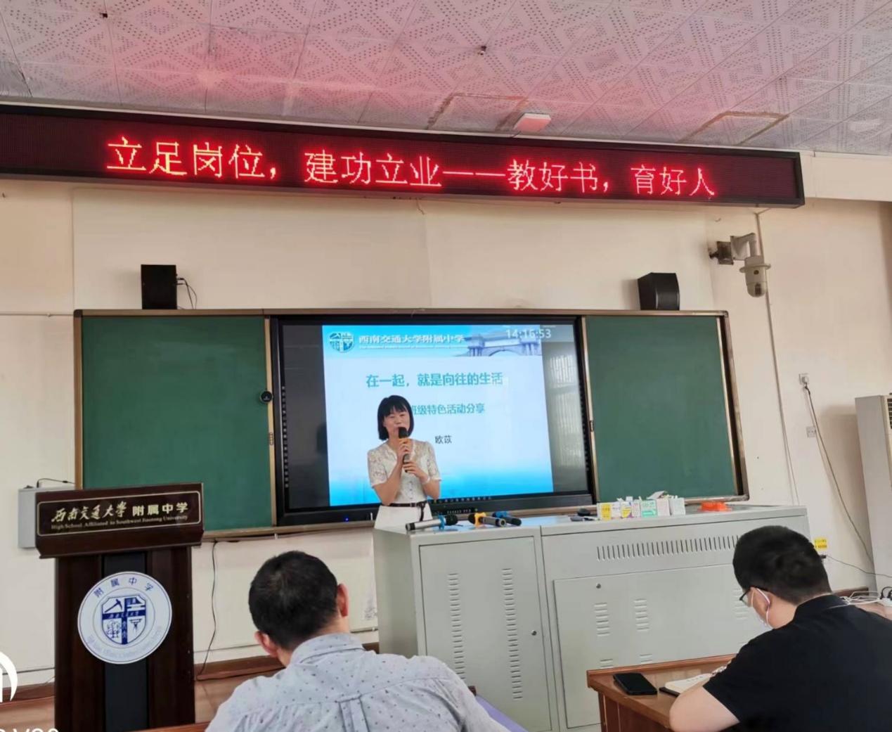 匠心守初心,笃行以致远。首先,第一党支部党员、成都市优秀班主任欧苡老师为大家做了班主任工作交流分享。在德育工作的一方田地,她深耕细作,催蕾育花,深情守望,桃李满枝。她用智慧创建班级特色活动,用爱心引领学生成长,一堂生动而真挚的讲座——“在一起,就是向往的生活”,让老师们感佩不已,深刻领悟到一名优秀党员教师的教育温度与情怀。