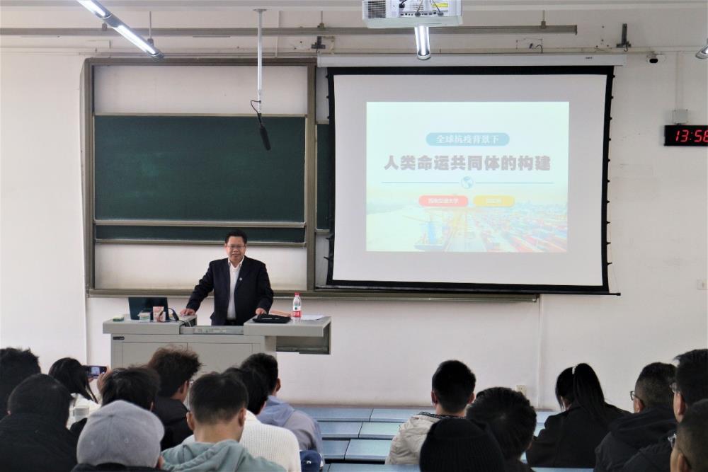 12月2日,副校长姚发明在犀浦校区X1312教室为地球科学与环境工程学院2018级的同学们讲授了一堂以“在全球抗疫背景下人类命运共同体的构建”为主题的思政课。