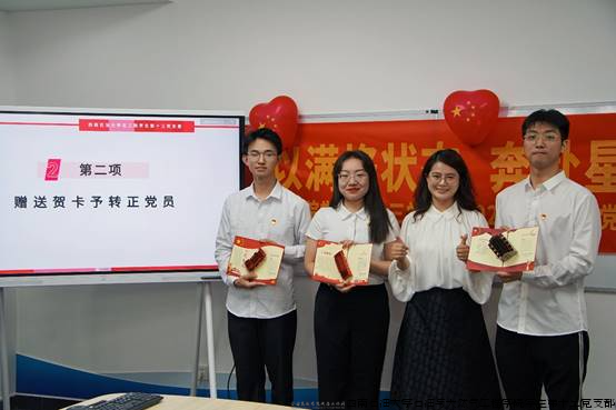 支部书记兰冰芯向3名转正党员赠送生日贺卡